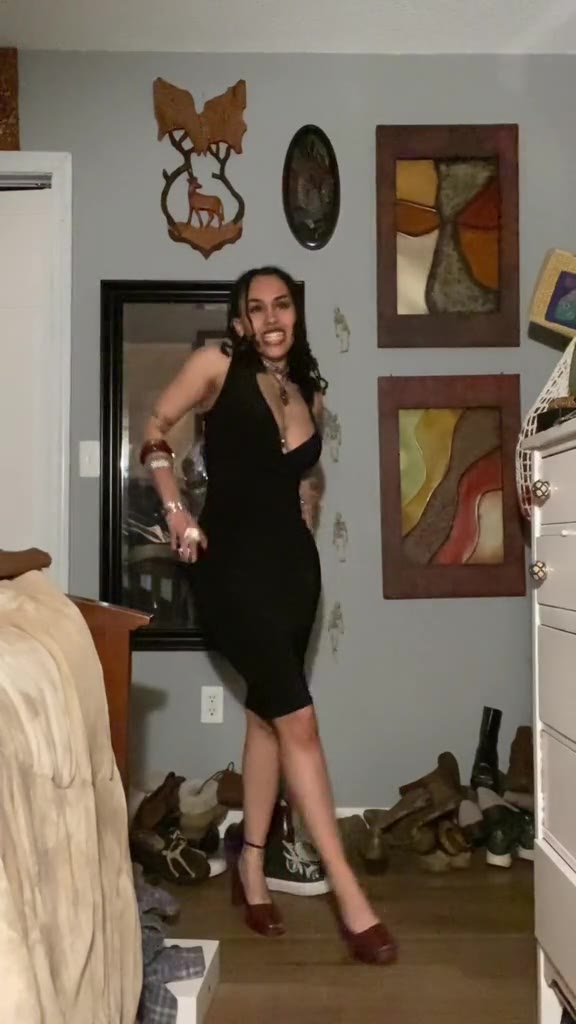 She must really like that black dress, lol