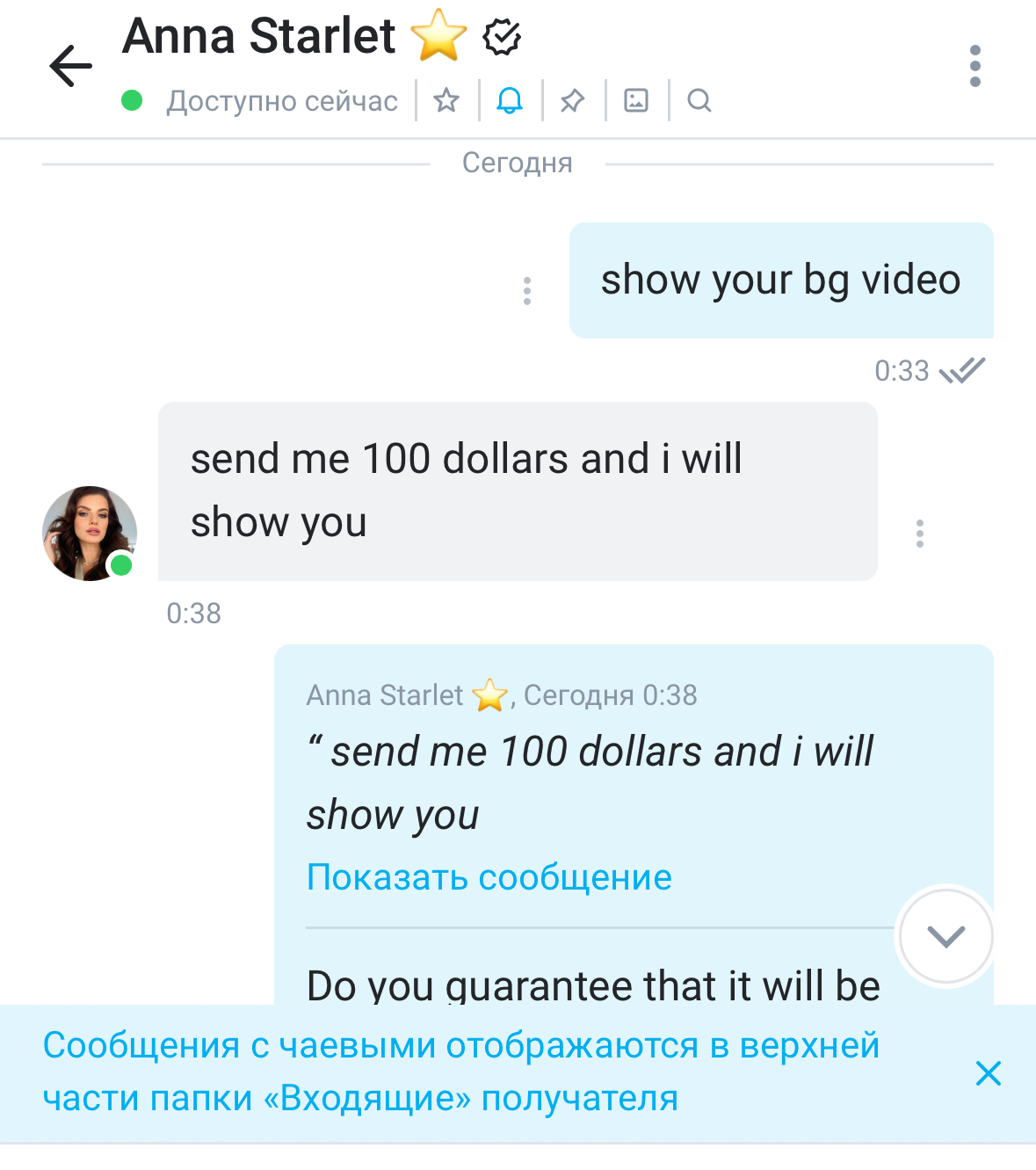 vende video con chico, pide $100 duración 6 minutos [/CITA] Did she mention any details? once she mention that saying it was a video when she was 18.